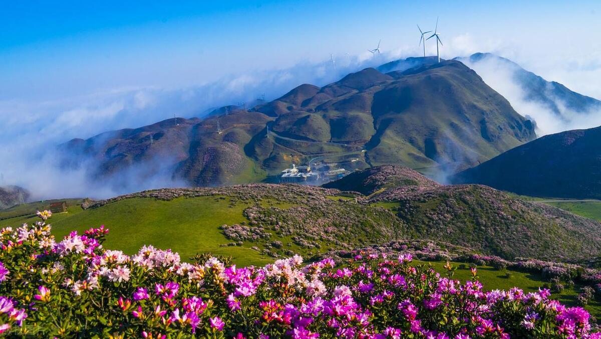 三月底至四月中旬,是乌蒙大草原观赏矮脚杜鹃花海的最佳时期。4万亩杜鹃花从低海拔到高海拔依次绽放,花期近一个月。云海与花海交织,自驾草原公路、露营、观日出,偶遇散养的牛羊群。